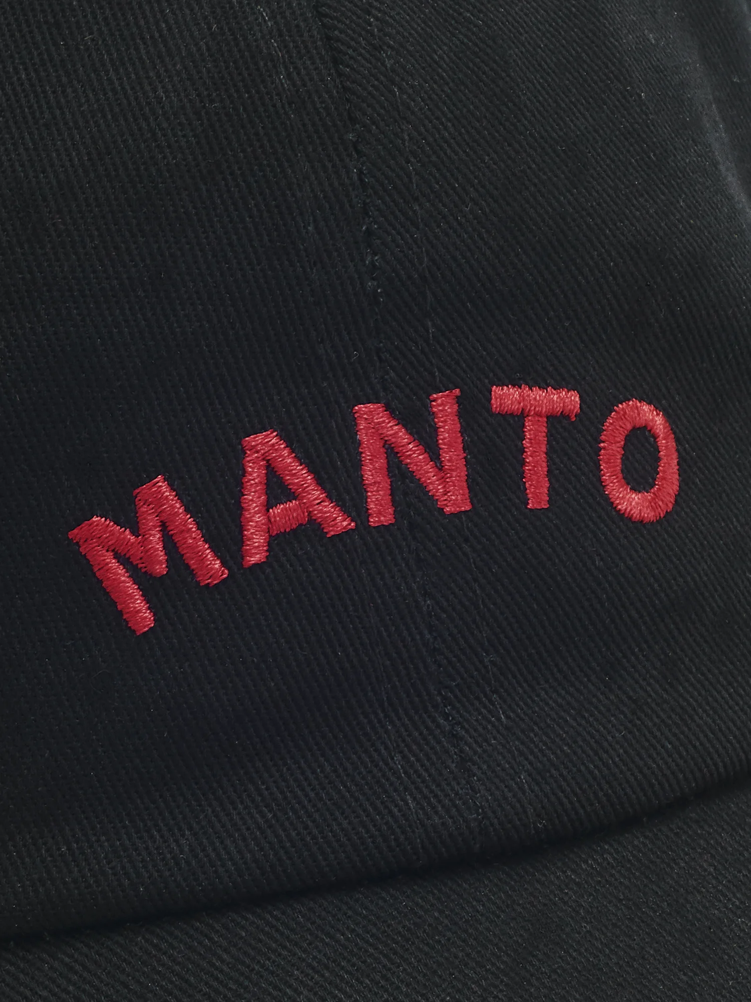 На черную кепку Манто методом вышивки нанесен логотип бренда.