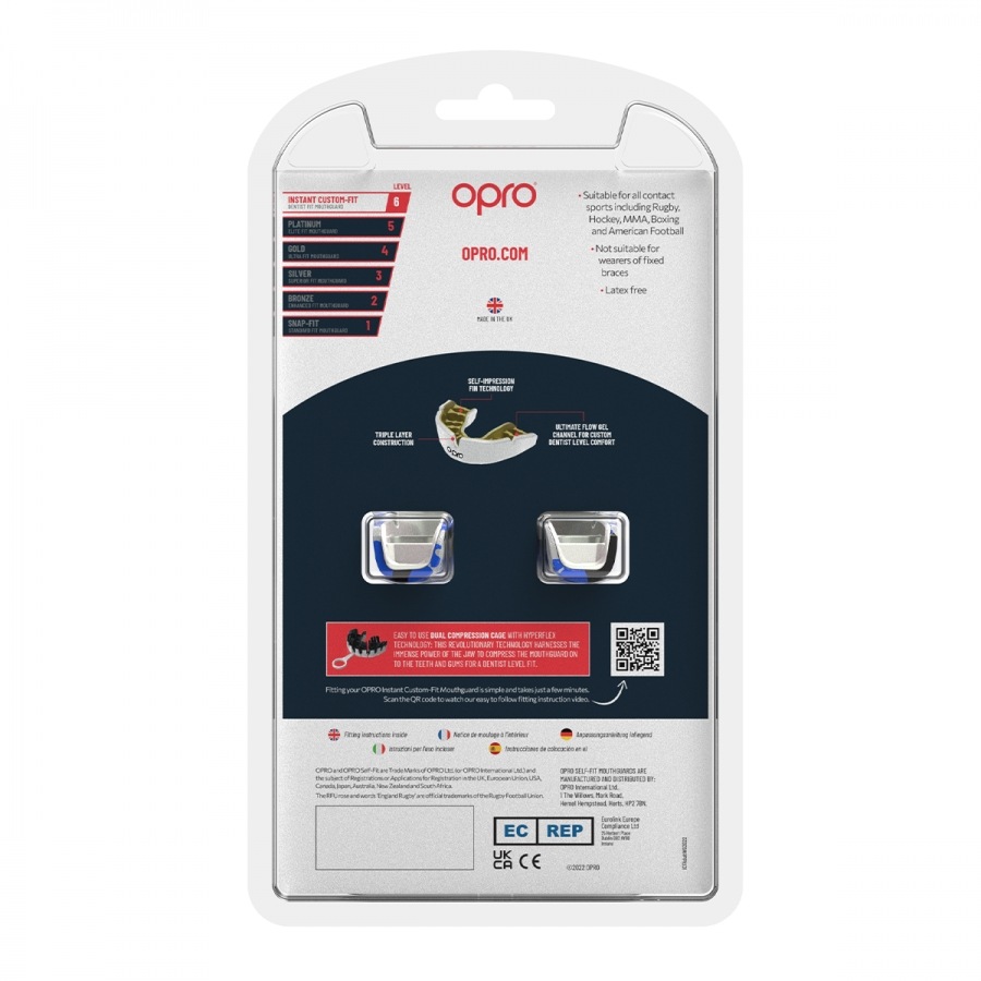 Запатентованная реберная технология одночелюстной боксерской капы OPRO Instant Custom-Fit Camo - Black/Blue/Silver точно обволакивает зубы, мгновенно создавая оттиск челюсти без ожидания. Кроме того, трехслойная конструкция обеспечивает высочайший уровень защиты от повреждений, подобный тому, который носят профессиональные спортсмены. Выбирайте из множества индивидуальных цветов капы в соответствии с вашим спортивным стилем и предпочтением. И получите максимальную защиту, соответствующую вашим результатам.