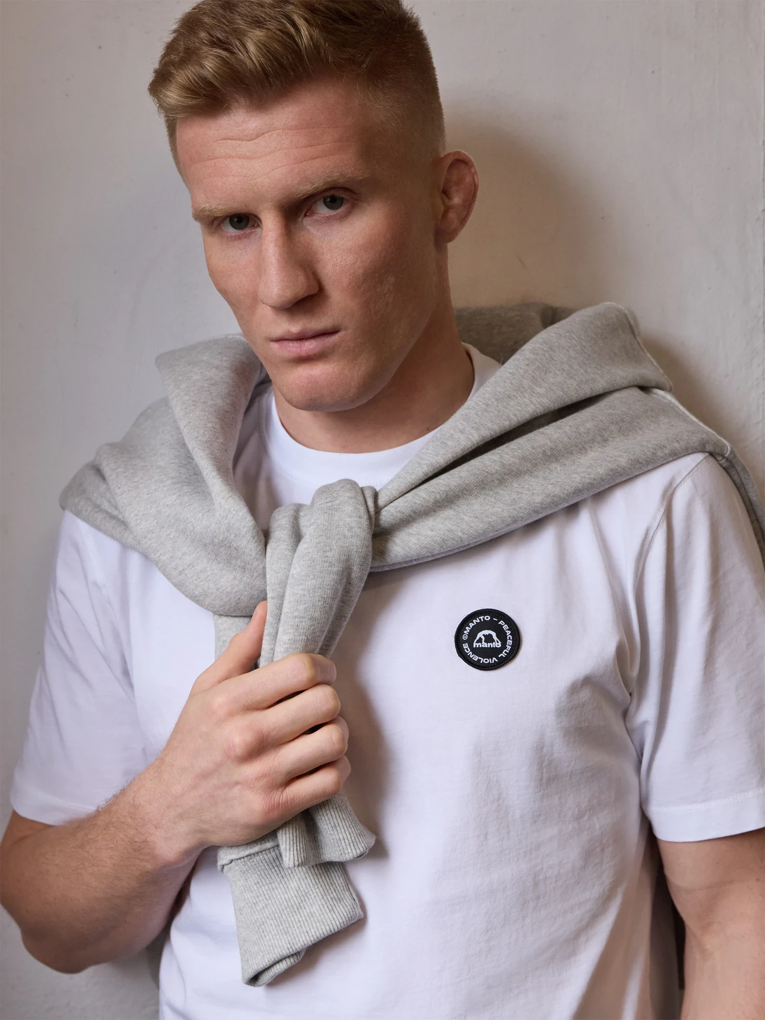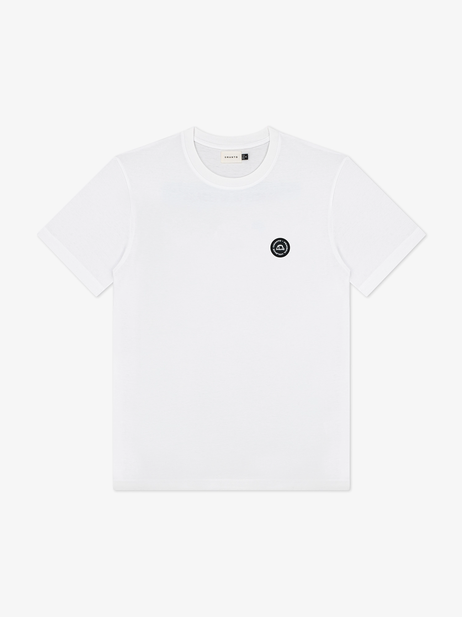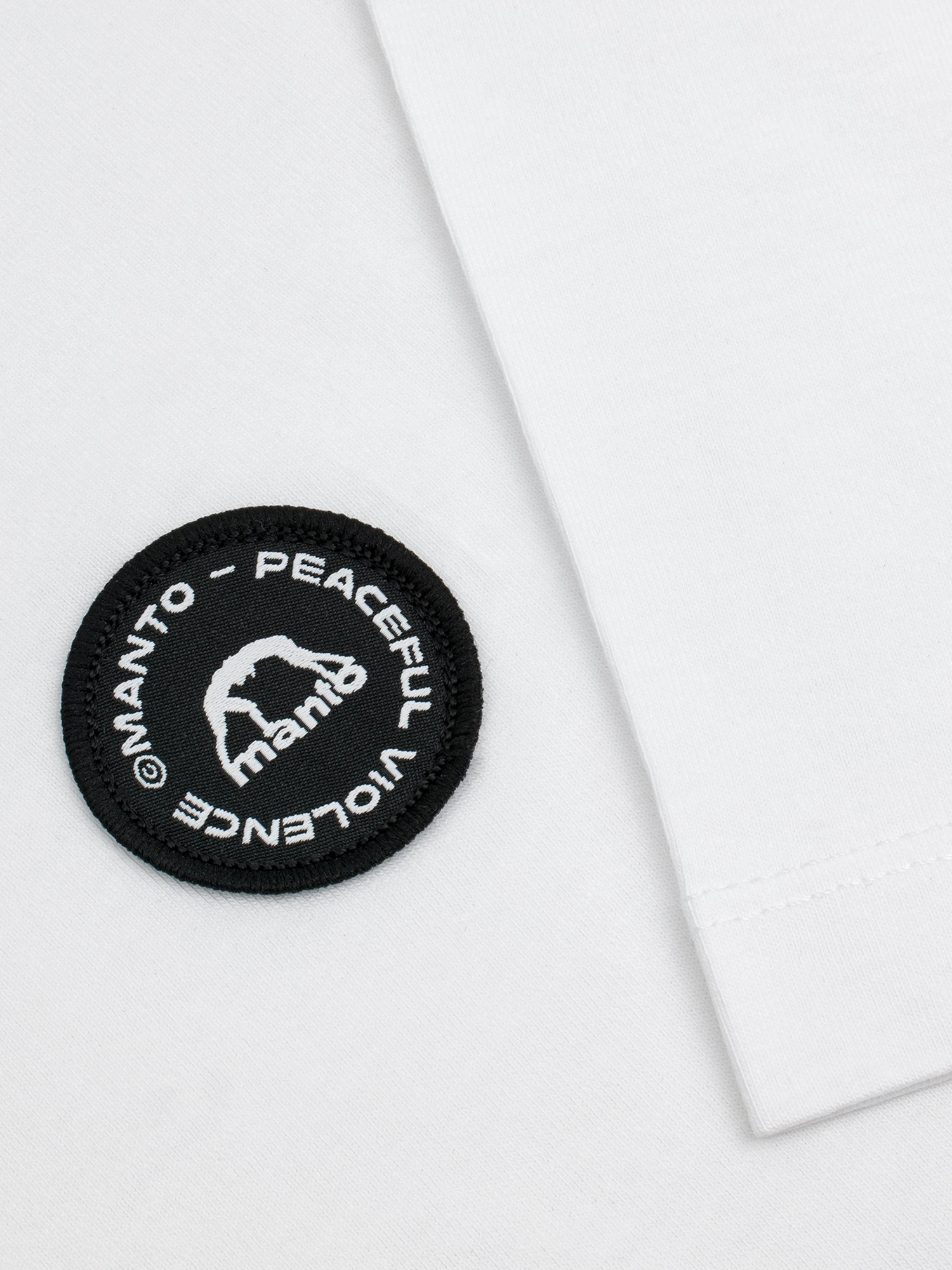 На белую футболку Manto Circle нанесена нашивка с логотипом бренда.