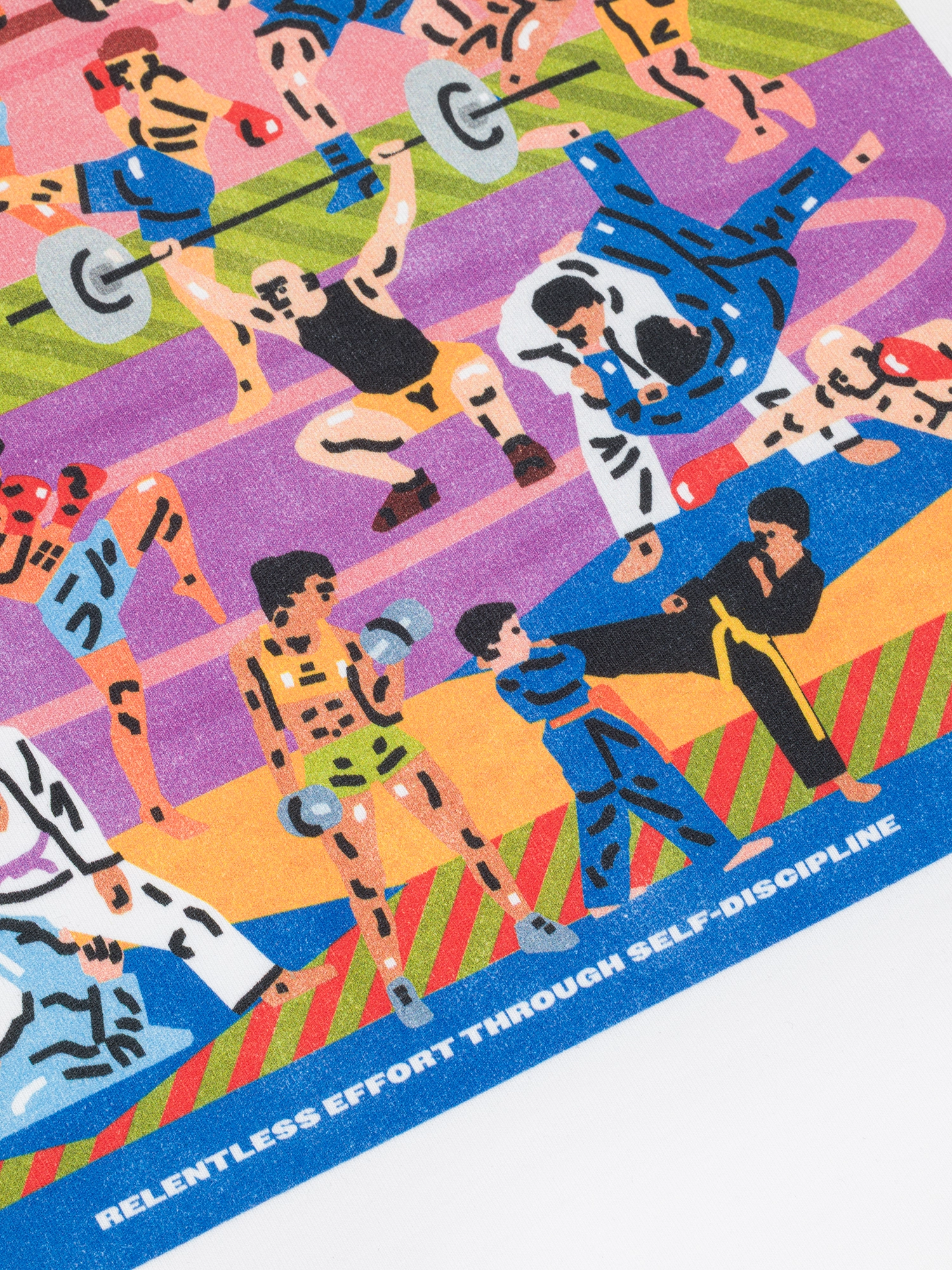 На белую футболку Manto Gym 3.0 методом качественной сублимации нанесен стильный, красочный принт с изображением зала единоборств.