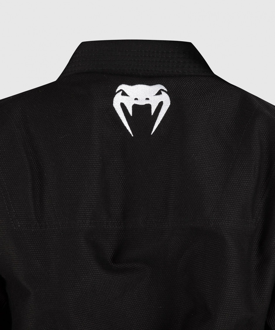 На левой груди черного кимоно для БЖЖ Венум вышито название марки, а на спине расположен логотип бренда в виде головы кобры.