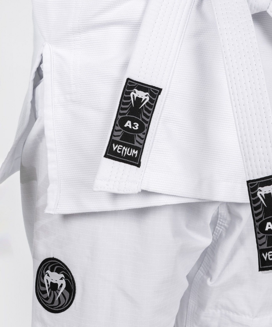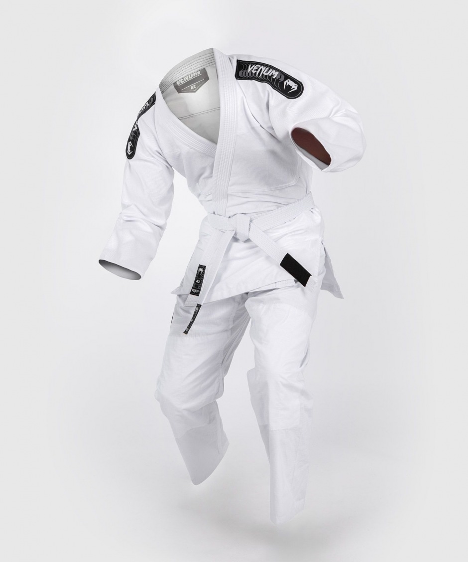 Легкое оригинальное кимоно для бразильского джиу-джитсу Venum First - White подойдет для ежедневных тренировок и соревнований, и изготовлено с учетом требований к соревновательным Ги международных федераций BJJ.