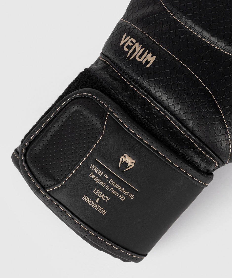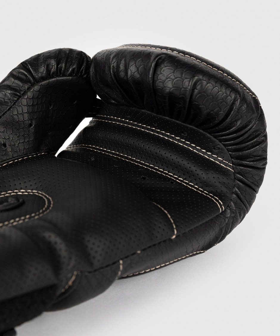 Черные боксерские перчатки Venum Impact Evo Scales смотрятся очень стильно, изготавливаются из износостойкой, качественной кожи Skintex и прошиты усиленными контрастными швами.
