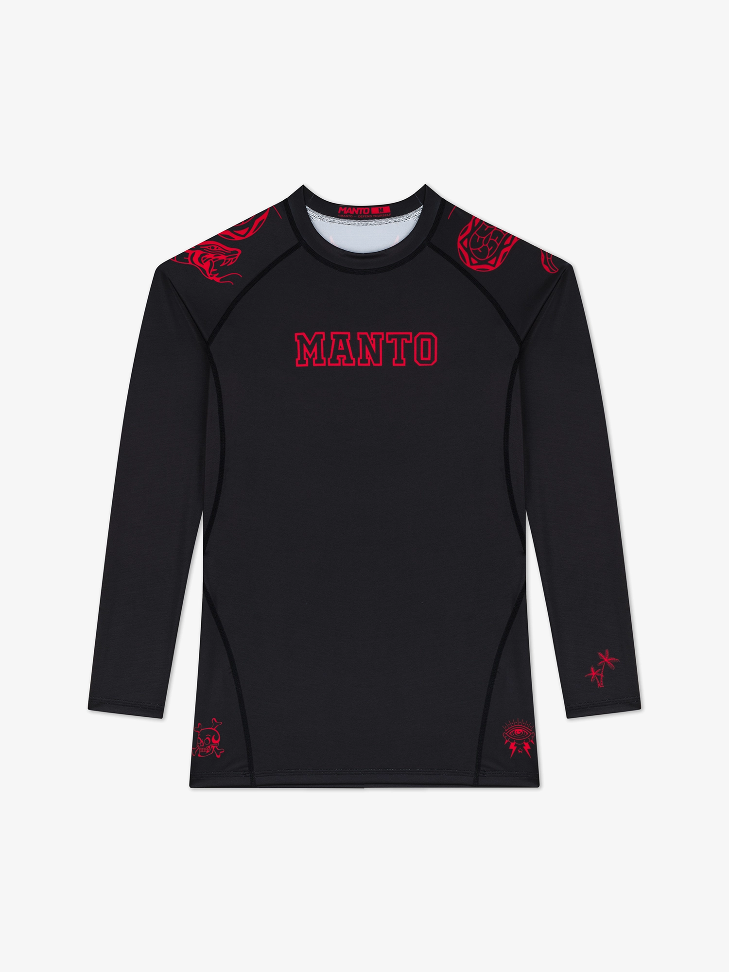 Стильный дизайн черного рашгарда Manto Miko был разработан в коллаборации с иллюстратором Miko BJJ.