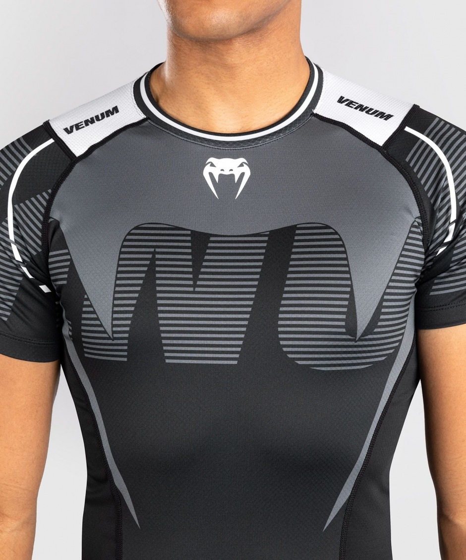 Рашгард Venum Adrenaline SS - Black/Silver Grey с коротким рукавом отлично подходит для занятий ММА (смешанными единоборствами), грэпплингом, джиу-джитсу, борьбой и другими видами единоборств.