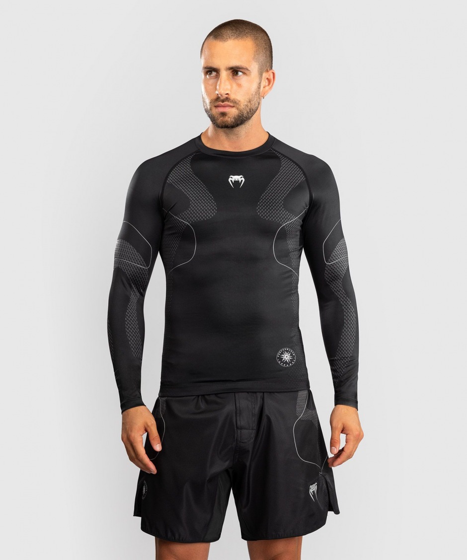 Рашгард Venum Nexus LS - Black/Silver с длинным рукавом идеально подходит для занятий ММА (смешанными единоборствами), грэпплингом, джиу-джитсу, борьбой и другими видами единоборств.