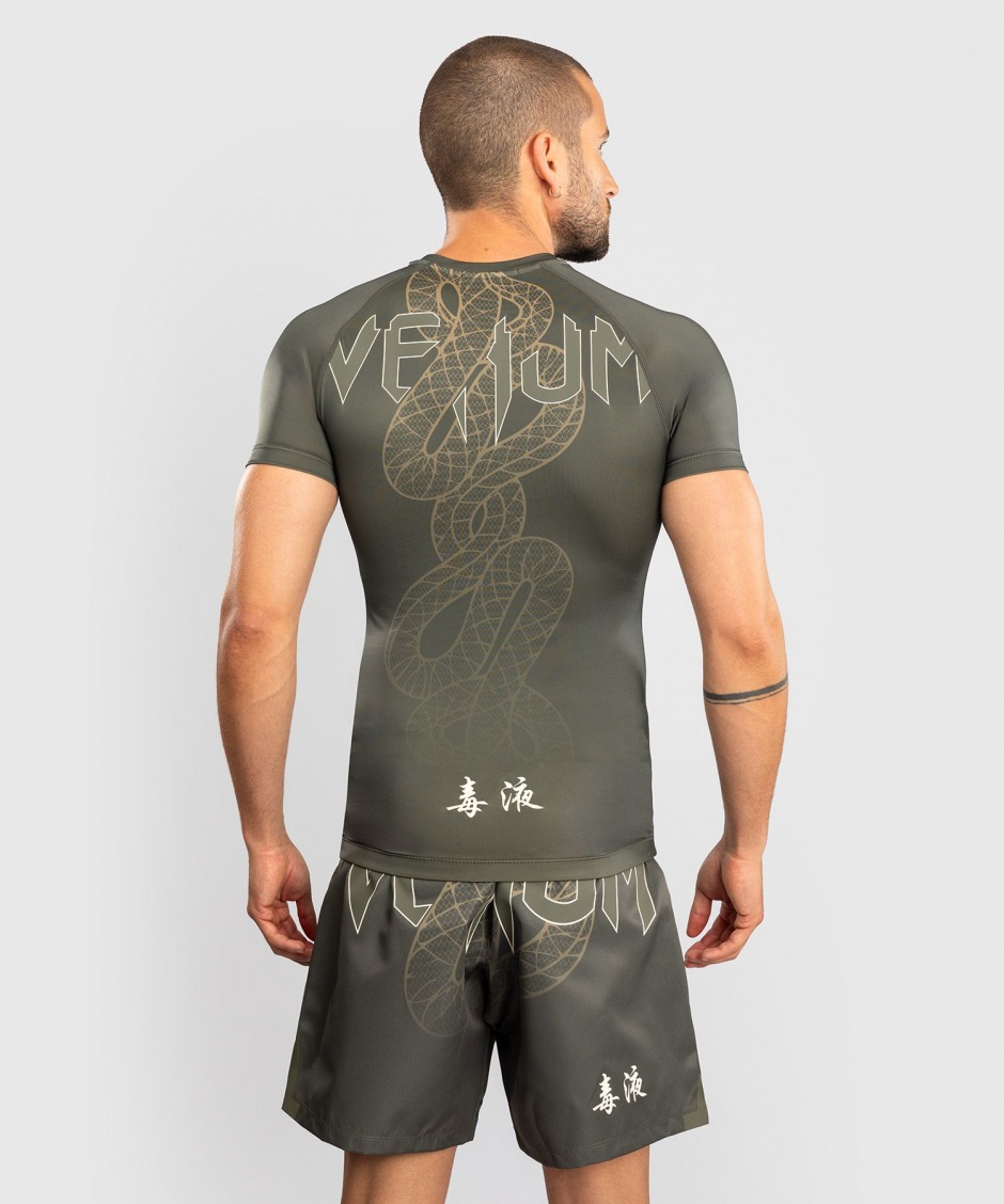 Рашгард Venum Serpenti SS - Khaki/Bronze/Ivory с коротким рукавом идеально подходит для занятий ММА (смешанными единоборствами), грэпплингом, джиу-джитсу, борьбой и другими видами единоборств.