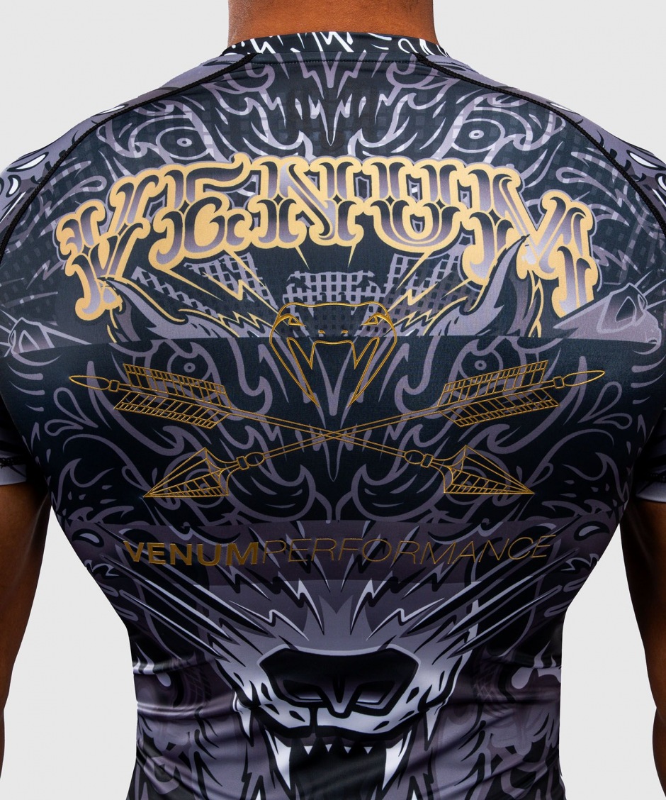 Рашгард Venum Wolf Atak SS - Black/Grey с коротким рукавом отлично подходит для занятий ММА (смешанными единоборствами), грэпплингом, джиу-джитсу, борьбой и другими видами единоборств.