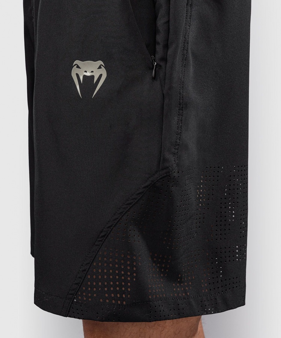 Спортивные мужские шорты Venum Lazer - Black/Grey сочетают в себе максимальный комфорт и стиль. Благодаря высококачественному составу из полиэстера и эластана они очень приятны в носке.